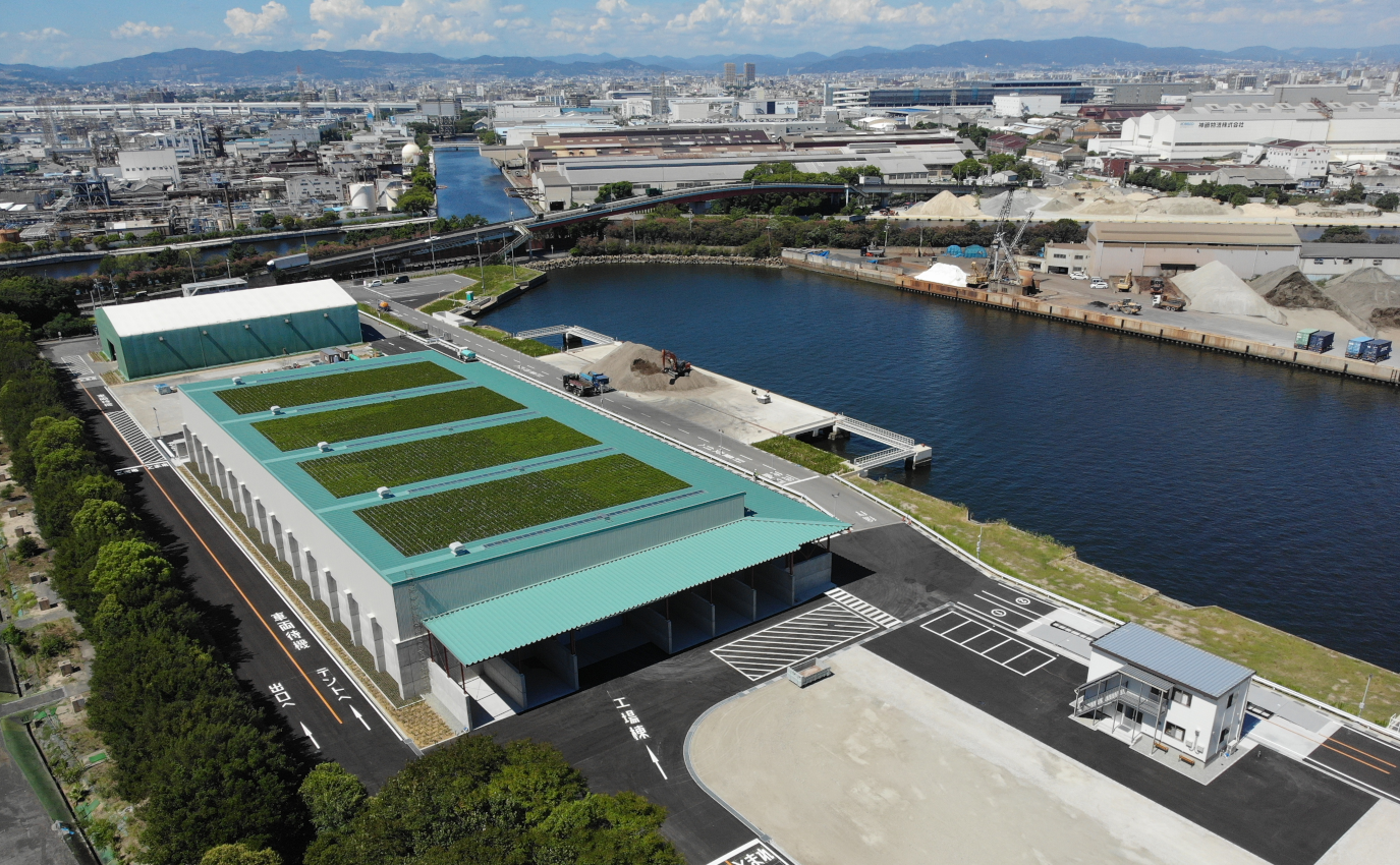 - ジオレ・ジャパンは兵庫県尼崎市内に本社工場と末広工場の2つの処理施設を保有しています。両工場共に専用バースがあり、船舶を用いた遠方からの大量輸送が可能です。